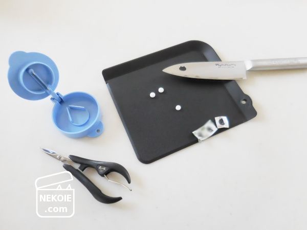 薬は猫用のものなのですが、毎日欠かさず服用している子がいます。それを獣医さんとの相談の上、ここ数年は自宅でカットさせていただくようになりました。
