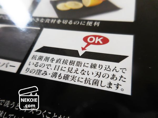 今回は主力まな板とは別の用途。それも白い錠剤をカットするのが最大の目的だったため、あえて黒を選択。後から気づいたのですが、本体の素材に抗菌剤が練りこまれている(表面的な加工だけではない)というのは嬉しいポイントだなとも思いました。