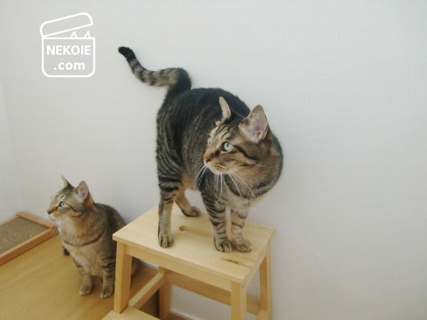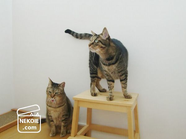 ステップを使いこなしつつ、向かってくる敵(?)に備える兄猫たち。