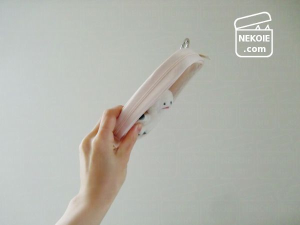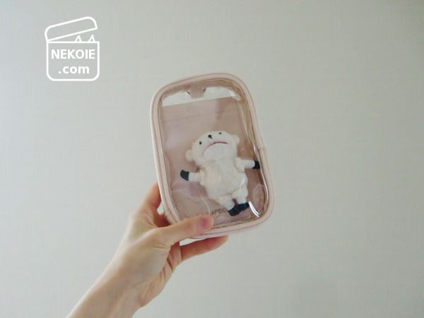選んだのが薄型ポーチ。厚みのあるラムくんは前後が窮屈そうなのだけれど、硬質なケースではなく軟質素材のポーチなのでなんとか収納できています。