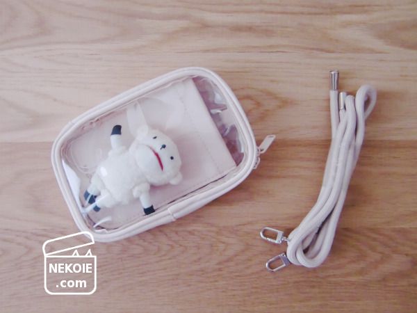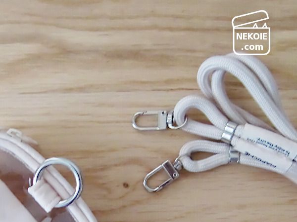 やはり同色のショルダーストラップも付属しており、このままポシェットとして使ったり、別途金具を用意してキーホルダーのようにつるしたりすることも可能。