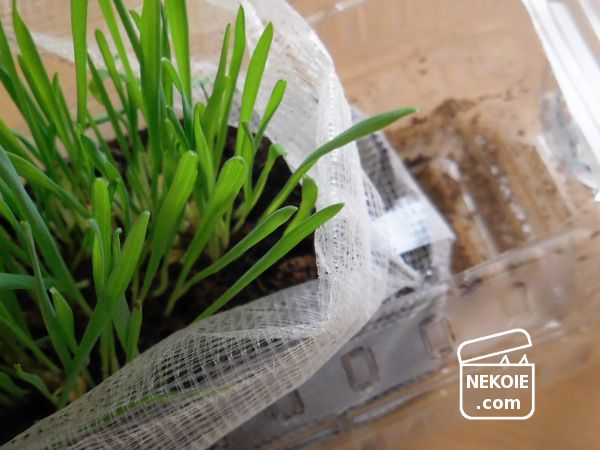ところが、洗っておいた猫草を手に取った瞬間、
