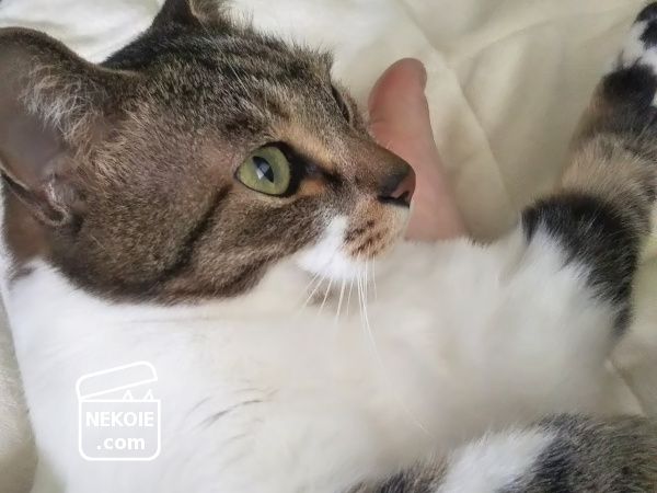 毎日のようにつま先を出してすみません。昨日は(ヨガ中の)抱っこを拒否できたけれど、今日は弟猫に負けました。