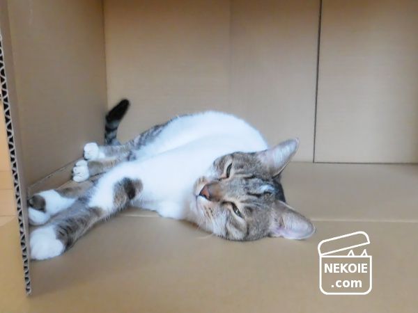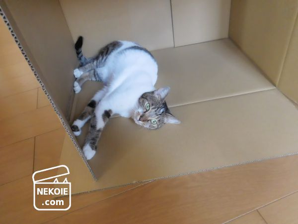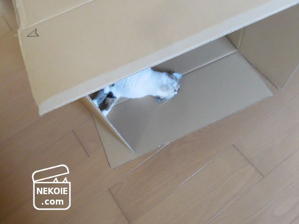 私も入れてしまいそうな大きなダンボールを堪能する弟猫。