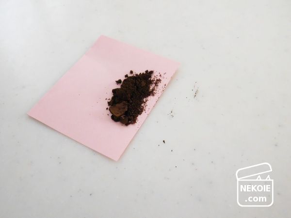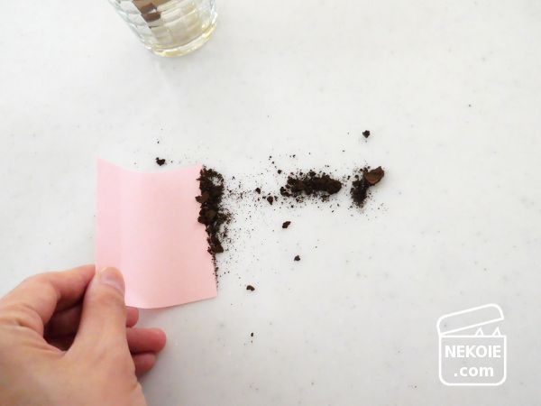 わずかに残った粉末は、付箋紙の粘着部分でぺたぺたとくっつけて回収します。ただの紙ではなく付箋紙を選んだのは、(すぐそばにあったことと)この粘着仕上げも理由でした。