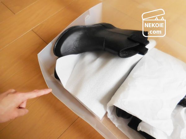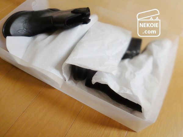 そこでミドル(ショート)ブーツを二足いっしょに収めることに。実は右側は自分のものではなく、家族の靴です。