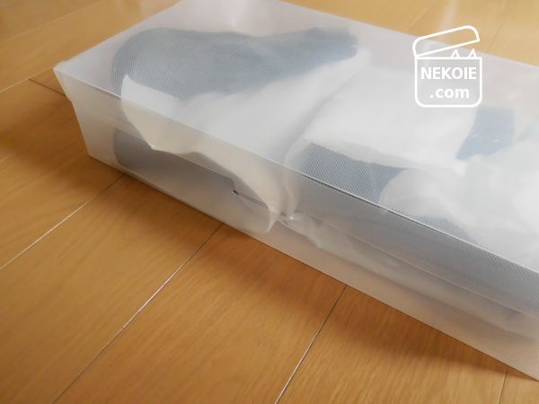 クリアケースではその心配もなく、これまでにも薄いサンダルなどは同じ箱に数足収める使い方をしてきたので、今後も便利に活用していけそうです。