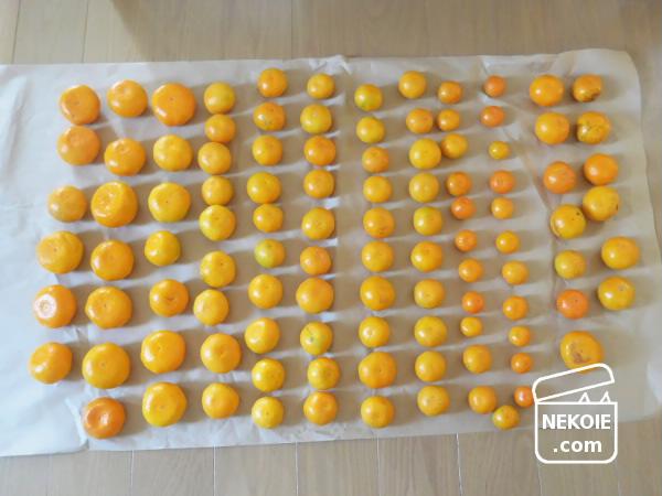 また大きいものの一部(10個ほど)は皮が実から離れてぶかぶかしている感じでした。その状態のみかんは「大味のイメージで嫌われ者」という印象があるのですが…実は、皮が剥きやすいという理由で私は結構好きです。そればかりでは困りますが、一割程度ならちょうどいいかなと。