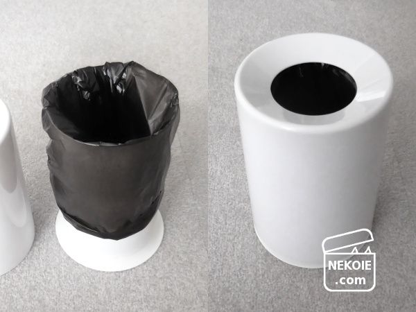 スーパーでもらえる(当時は無料であるところが多かった)小さめのレジ袋も、持ち手の部分が広がってしまうことなくすっきり装着できました。またうちは猫たちの中にポリ袋を噛んでしまう子がいるため、見た目のよさ以上にメリットを感じながら使っています。