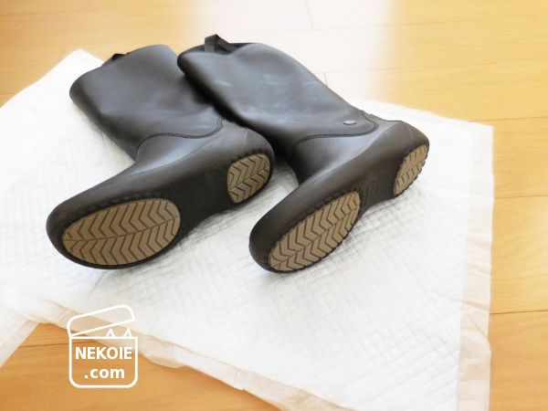 自宅でのガーデニングから、ちょっとした外出時のブーツ感覚でも愛用したい、と六年ほど前に買ったものでした。こちらは使用後にお手入れしているところの写真。