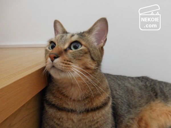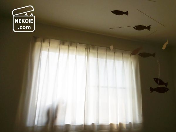 紙製モビールはとても軽いものなので、開き戸をそっと開閉するくらいの空気の動きでも、ゆらゆらたゆたいます。私はそれに癒されるけれど、その横で同じように天井近くを見上げる猫たちは、なんとも表現しにくい表情を浮かべる日々。