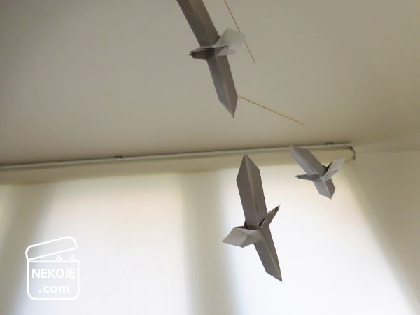 かつて余りがちだった「グレー」のおりがみを使うことで、かもし出すのは静かな存在感。わが家の殺風景さにもうまく溶けこんだかなと思います。