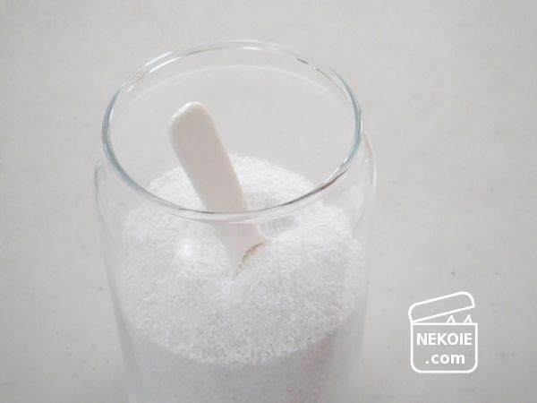 食洗機の洗剤には粉末を使っていて、食器の数や汚れの状態によっては量を加減することが理想的。ただわが家ではひどく汚れたままの食器を食洗機に入れることはなく、日ごとの食器の数や種類ががらりと変わることも少ないので、基本的に洗剤は最低限の一定量です。