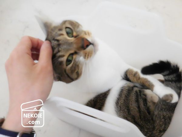 あごの下をさわられるのも、やっぱりうれしそう。