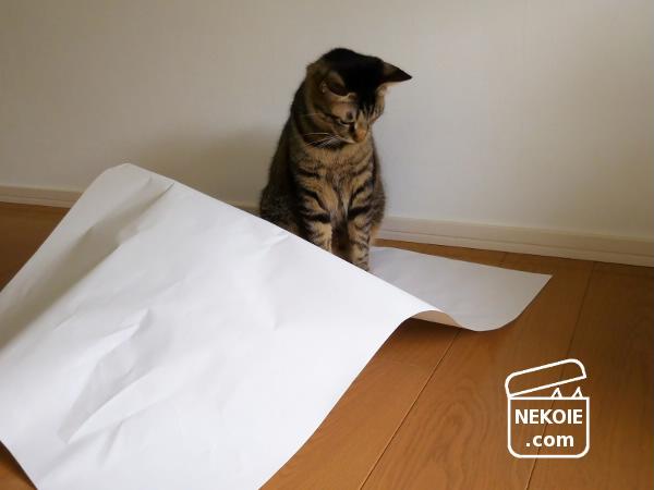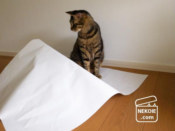 本日の猫と、そんな理由から出してきた紙。