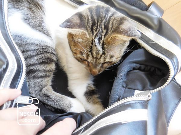 リュックと入れ替えるつもりだった先代の防災用バッグですが、しばらく猫向け防災用品を収めるのに使っていたんです。