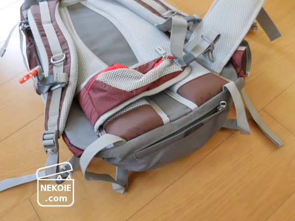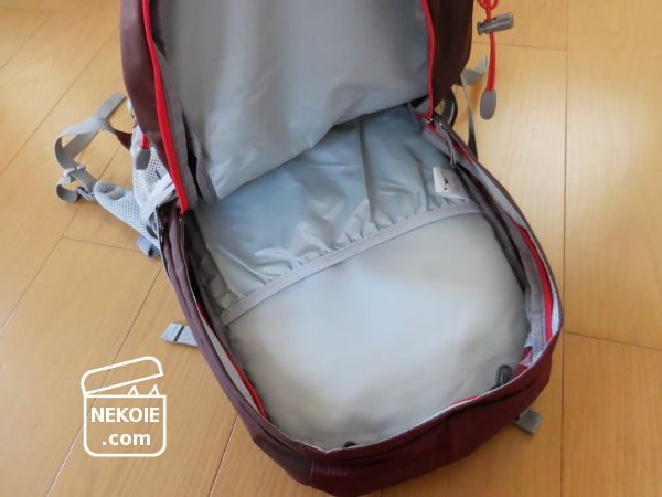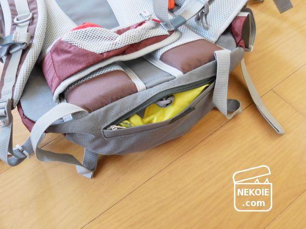 こういうリュックを持つのが初めてだった私はびっくりしてしまったのが、レインカバーも入っていること。