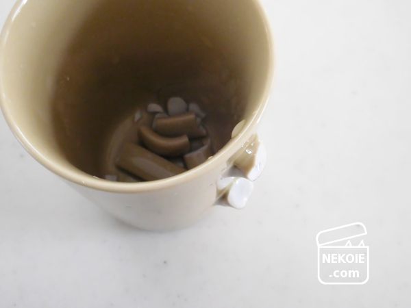 そばに猫たちがいたため条件反射でかけらを回収し、それ以上散らばらないようにとカップの中へ。