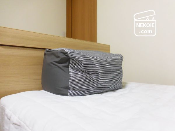 この状態でも私自身は気をつけながら背もたれとして使うことがあります。向きが90度変わったけれど、これはこれで便利。猫が再び上にのり始めるようなら改めて場所を変えるつもりだったのですが、その様子はありません。
