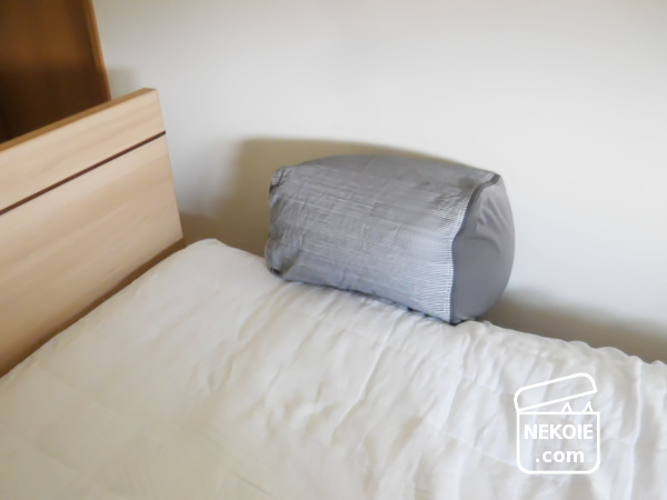 枕には高すぎるけれど背もたれとしてなら使うこともできるし、何より私の頭上で猫がのびのびと寝るのにちょうどよい場所になっていたんです。私の身長が低いから可能な設置方法でもありました。
