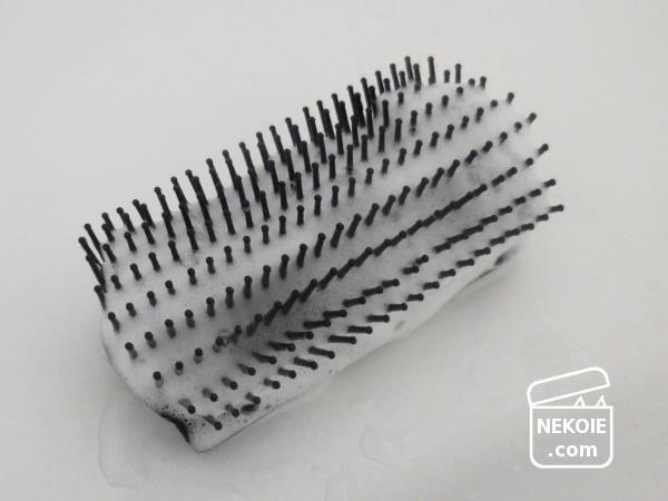 以前は重曹などをぬるま湯に溶かして浸け置きしていたのですが、ヘアブラシもこの「泡のせメンテ」が簡単でした。