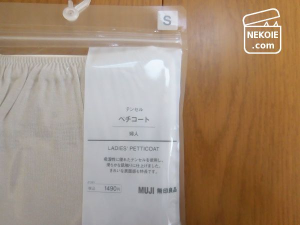 「白スカートの下にも使える」という以外には特別なこだわりはなく、レースもフリルもない、ごくごくシンプルなペチコート。アウトレット価格で半額以下でした。