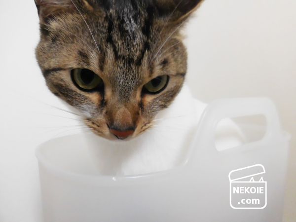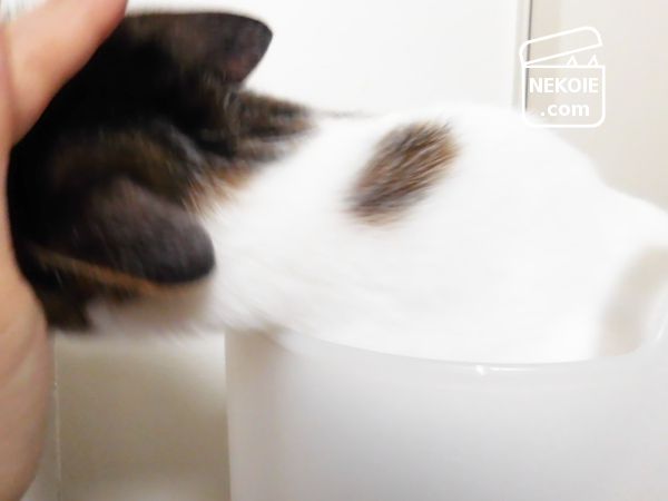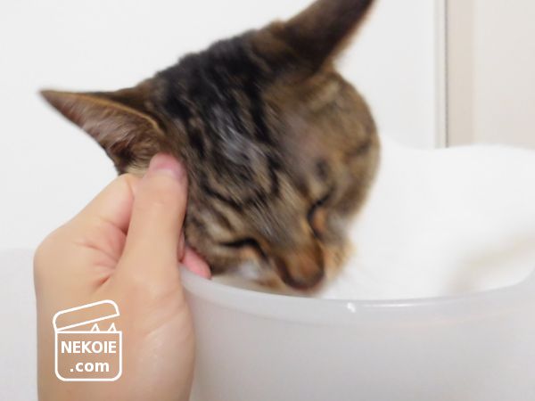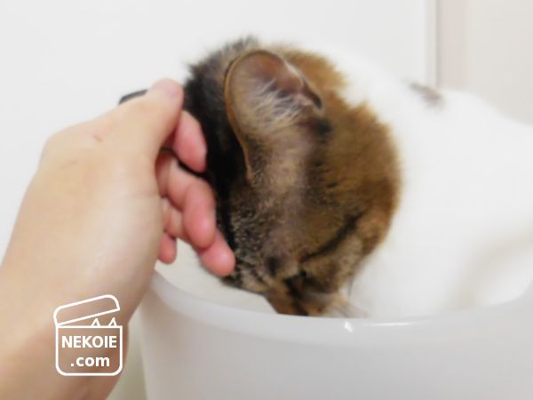 今日も、けしてばけつの中から出ようとはせずに私の手を追ってきました。