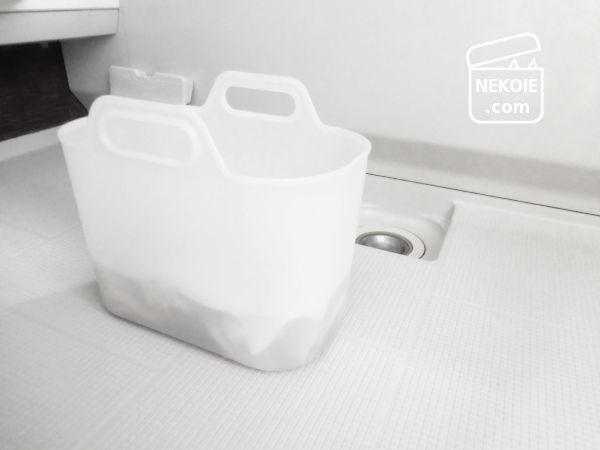 そんなばけつにも代用可能なものはいくつかあるのだけれど、この廃番ばけつが便利なのは片手で持って移動しやすいかご型であることと、洗濯槽にすっぽり収まるサイズであること。