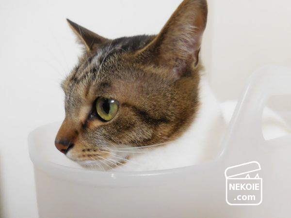 私の手で入れることもあるけれど、自らぴょこんと入っていくことも。寝そべるには狭そうなのに居心地はいいようなのです。