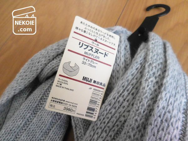 ウールのリブスヌード(ライトグレー)。