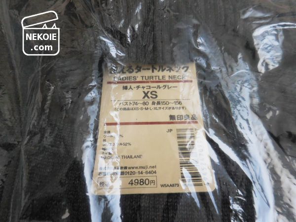 ウールの洗えるタートルネックセーター(チャコールグレー)。