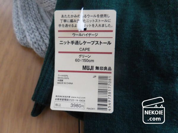 ウールの手通しケープ(グリーン)。