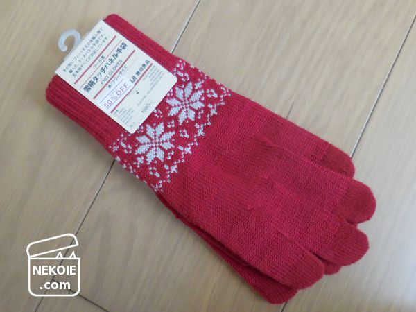 そして雪柄タッチパネル手袋(赤)。