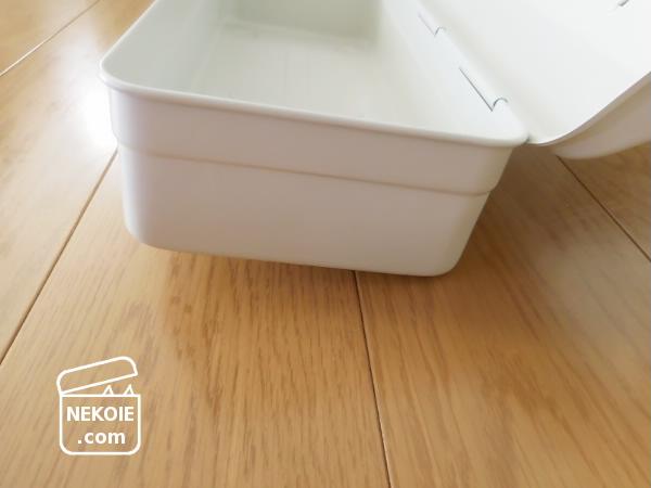 それに蓋が床と接触するまで開ききってしまうようなタイプだと、私はいずれ蓋(塗装)も床も傷つけるだろうな…と思えたので、このくらいがベストなのかもしれません。