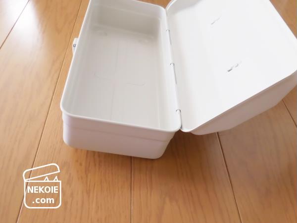スチール製の工具箱に関しては、他社でも似たデザインを見かけたのですが、このサイズで内側も外側も真っ白なものは希少です。