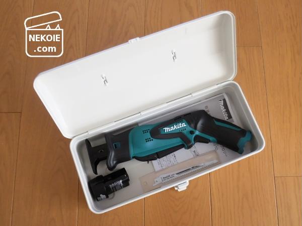 愛用ハンディクリーナと同じメーカー、マキタの充電式レシプロソー(電動ノコギリ)を入れました。再三確認したので、理想どおりの収まり具合です。