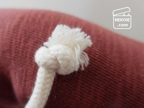 ひもは先端が結ばれた直径5cmくらいの丸ひも。