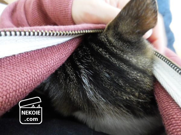 またパーカーを選ぶ際にはファスナーがあることも気がかりの一つでした。ただボタンやフックなど簡単に食いちぎられそうなパーツよりは安心に思え、毛の巻きこみに注意しながら使ってみることにしました。今のところ猫がよっぽど暴れさえしなければ問題なさそうに感じています。