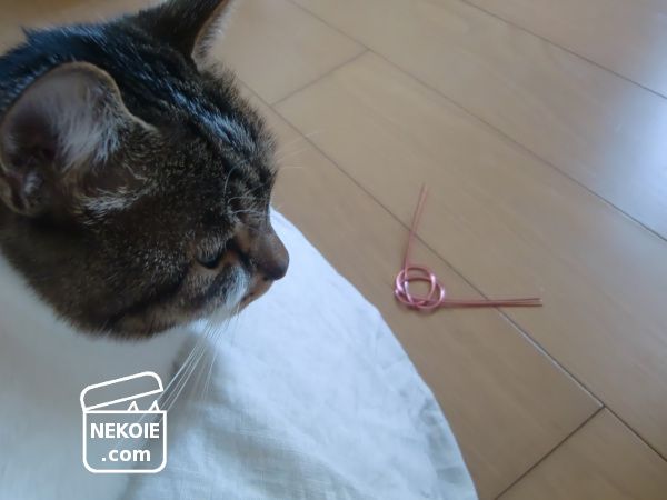 おもちゃにするくらいなら良いのですが、猫草感覚で食べてしまいそう……と心配になり、改めて手の届かない場所へ移動させました。