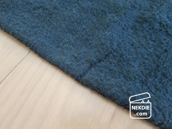 相変わらず猫が爪を立てていますが、今のところは糸が引っ張り出されている様子はなく、やはりパイルの短さも重要なのだと実感しました。