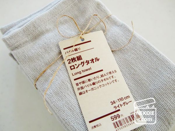 もともと採用していた無印良品のロングタオルは、当初ヘアドライのために買いました。濡れた髪をまとめるための用途です。