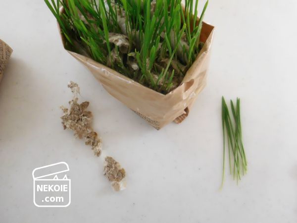 それだけが理由というわけではないものの、わが家ではこのセットで育てた猫草も人間の手で収穫してから猫にあげるようにしています。