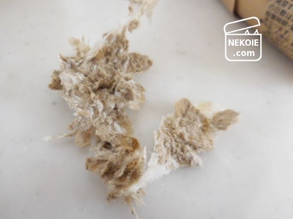 黒いかびのほうもパルプに発生しているのだと思うけれど、それが猫草にも付着していることがあります。また綿毛のほうも灰色になっていることがあって、黒いかびと融合しているのか、他の種類なのかはわかりませんが、いずれにしてもこれを誤食させるのは本当に怖いなと思いました。