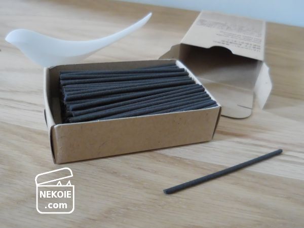 - 燃焼時間は直立状態で約十分(一般的なお線香より短め)。