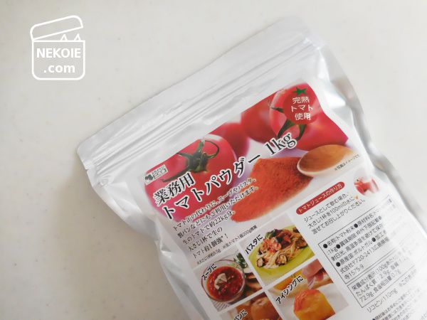 インスタント麺にトマトジュースや生トマトをあわせていたこともあるのですが、保存の利くパウダーだと常備しやすいし、量も調節しやすいのが便利。私は大袋(1kg)で買っていますが、お試しサイズもあります。