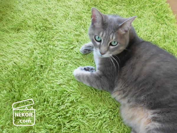 ラグ上の彼は、キリッと決め顔。