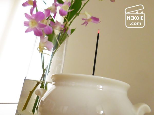 猫のお仏壇だからというのもありますが、もともと愛用しているお線香立て(本来はシュガーポット)がややクリーム色のものだったので、むしろ買い替えたことで色味が近くなったんです。