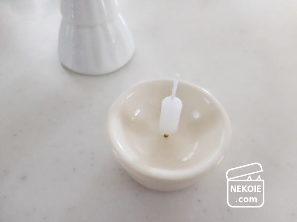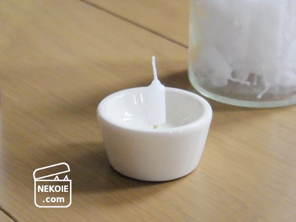 写真のとおり芯が根元まで埋まらず若干浮いてしまうのですが、土台の低さとうつわ内側の深さのおかげで安全性への不安は軽減。もともと短時間しか灯さないろうそくだったのでそこまで心配はしていなかったけれど、長く使うときほど安心感が増しそうです。