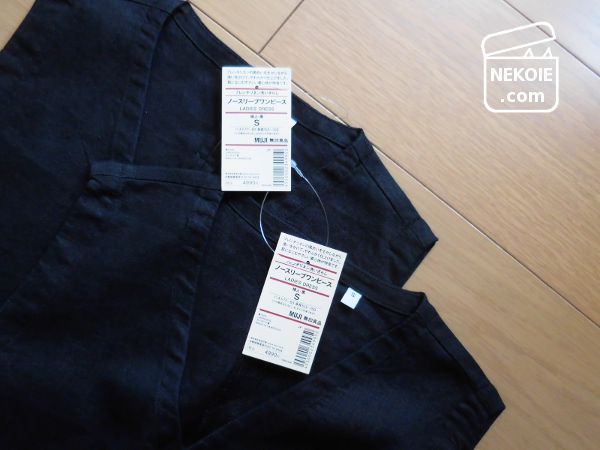 ただし、どちらも無印良品のフレンチリネン素材のシャツワンピ。
