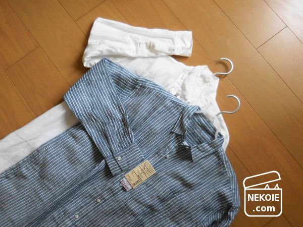 二種類となった理由は「購入時期が違う」というのが一番大きいです。白いほうはもともと持っていたお気に入り。春にも着ていたけれど、暑くなってきたので現在は秋用に保管中。そして新たに買い足す分は、少し濃い色のものを(濃淡で一着ずつ持とう)と選びました。